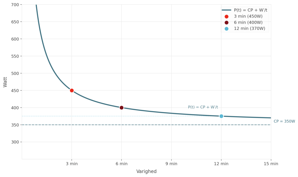 - W’ (W-prime): Dit “røde felt” eller din reservekapacitet. Det er forsimplet sagt energi (målt i Joule), du har til rådighed over Critical Power. Det er den reserve, du bruger af, når du går i udbrud eller angriber på en bakke. Jo hårdere du træder, jo hurtigere opbruger du W’.